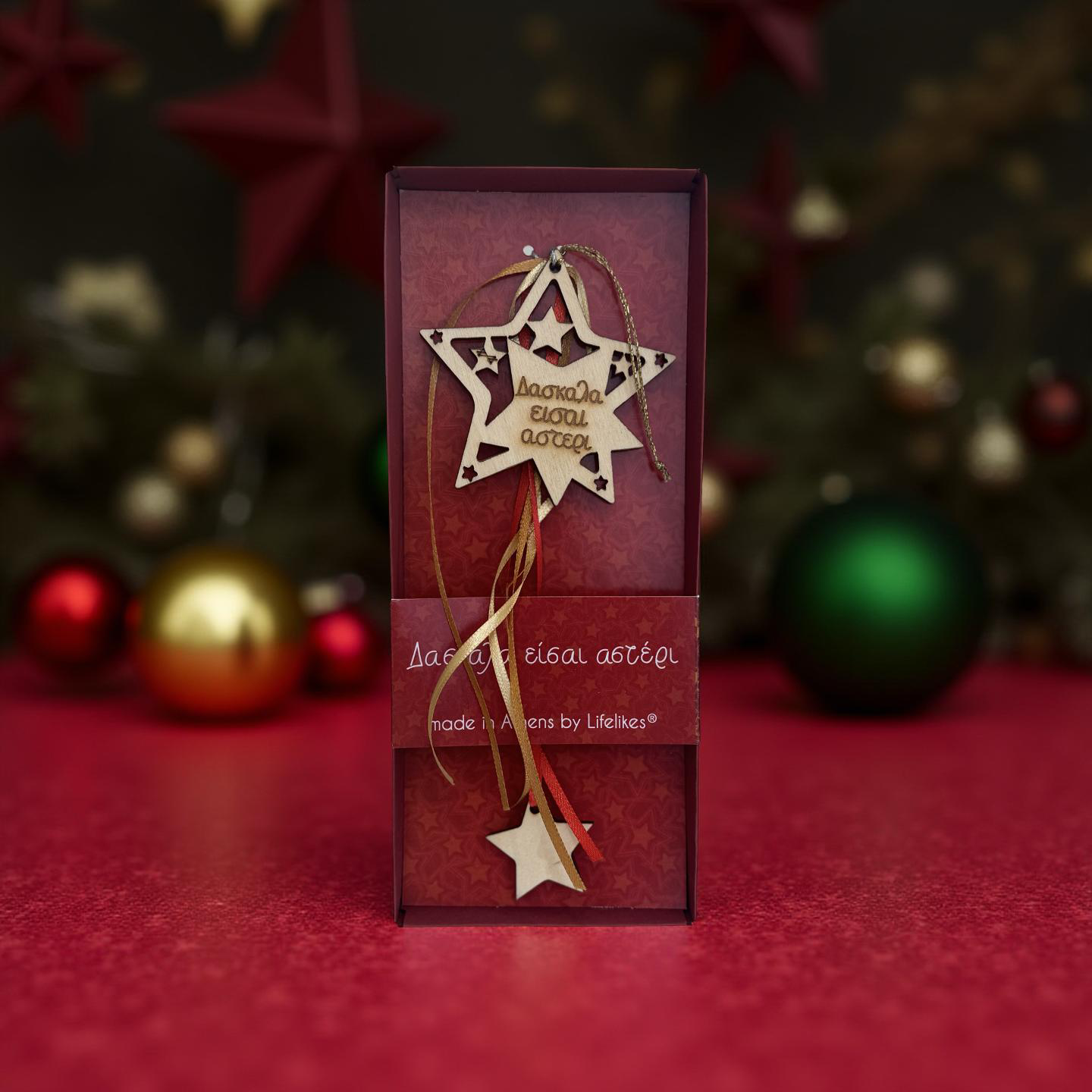 Χειροποίητο ξύλινο γούρι για την δασκάλα , σε κουτί