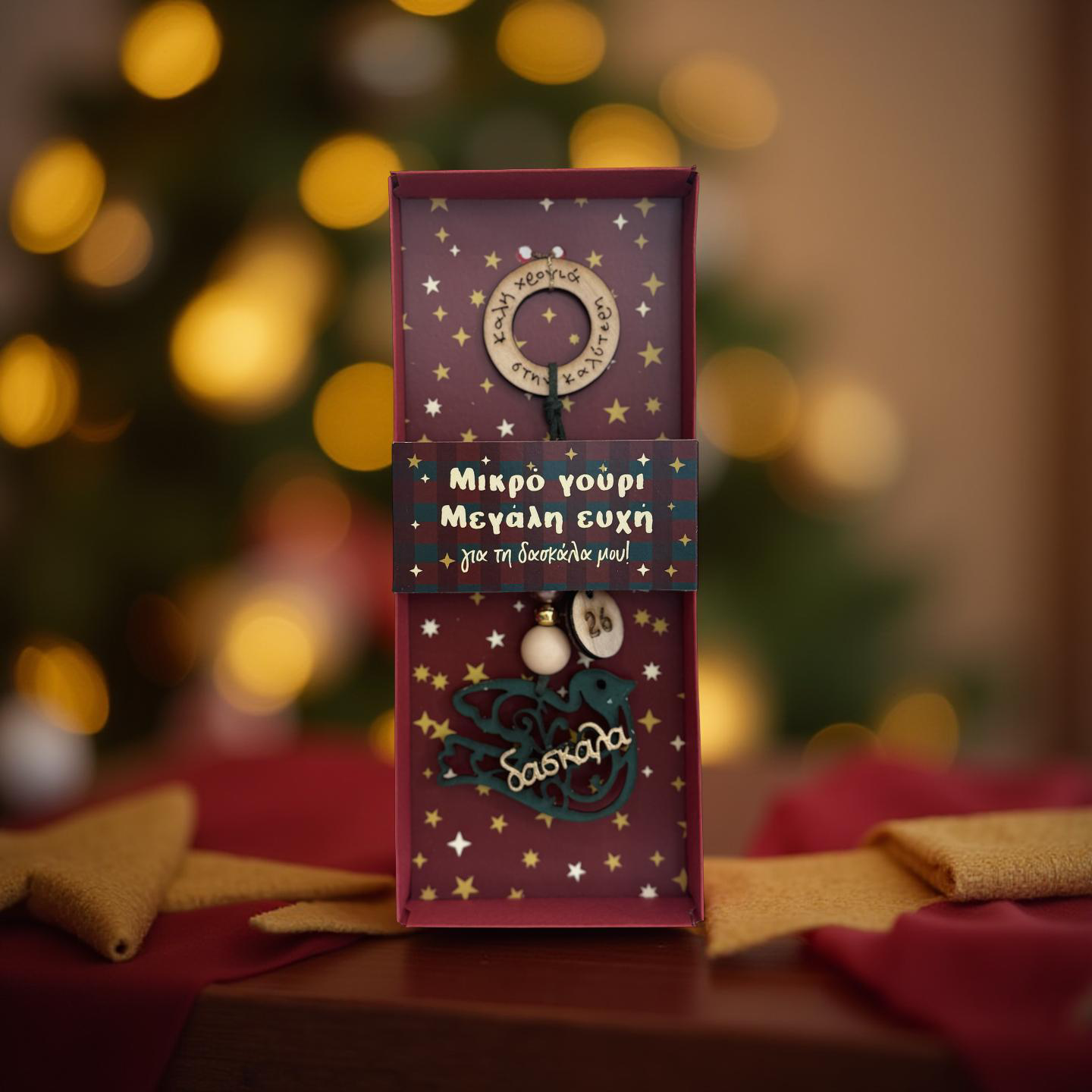 Χειροποίητο ξύλινο γούρι σε κουτί για την δασκάλα.