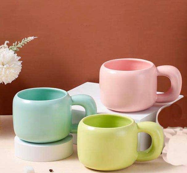Στρογγυλή κούπα με χοντρή λαβή.