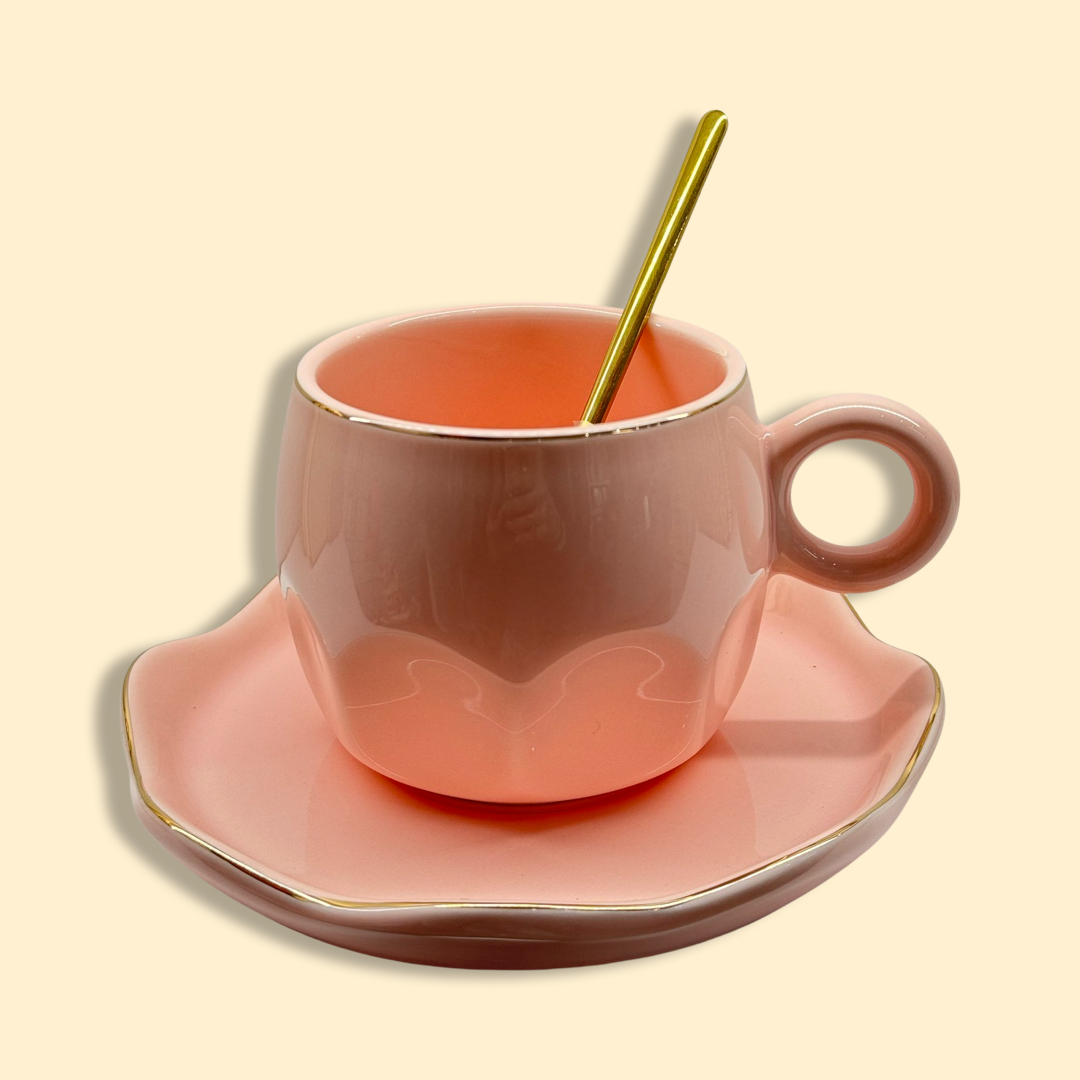 Κούπα , πιατάκι & χρυσό κουταλάκι για να πίνεις το τσάι η τον καφέ σου με ρομαντική διάθεση.