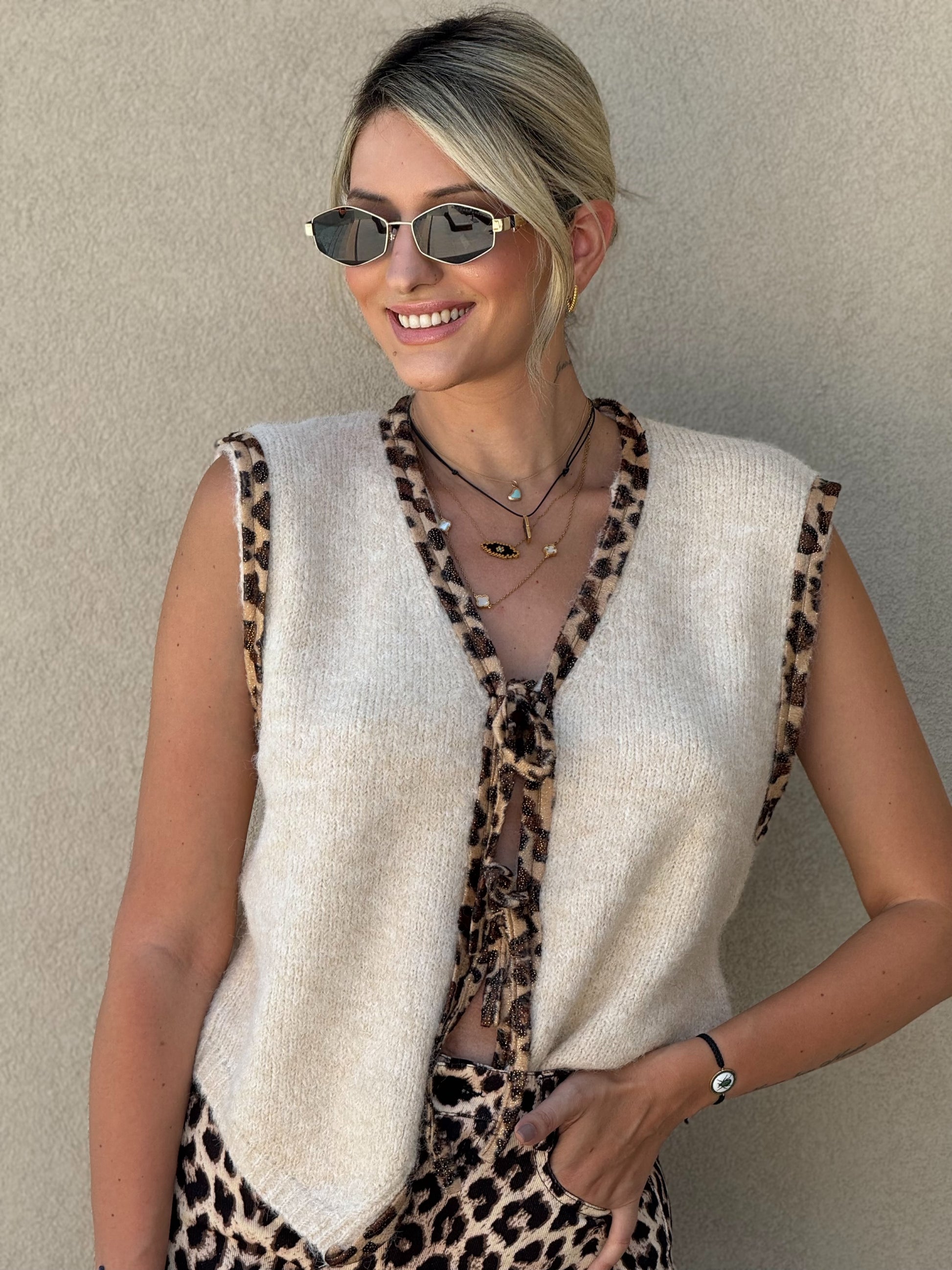 Γιλέκο με λεοπάρ λεπτομέρειες & δέσιμο με φιογκακια ,