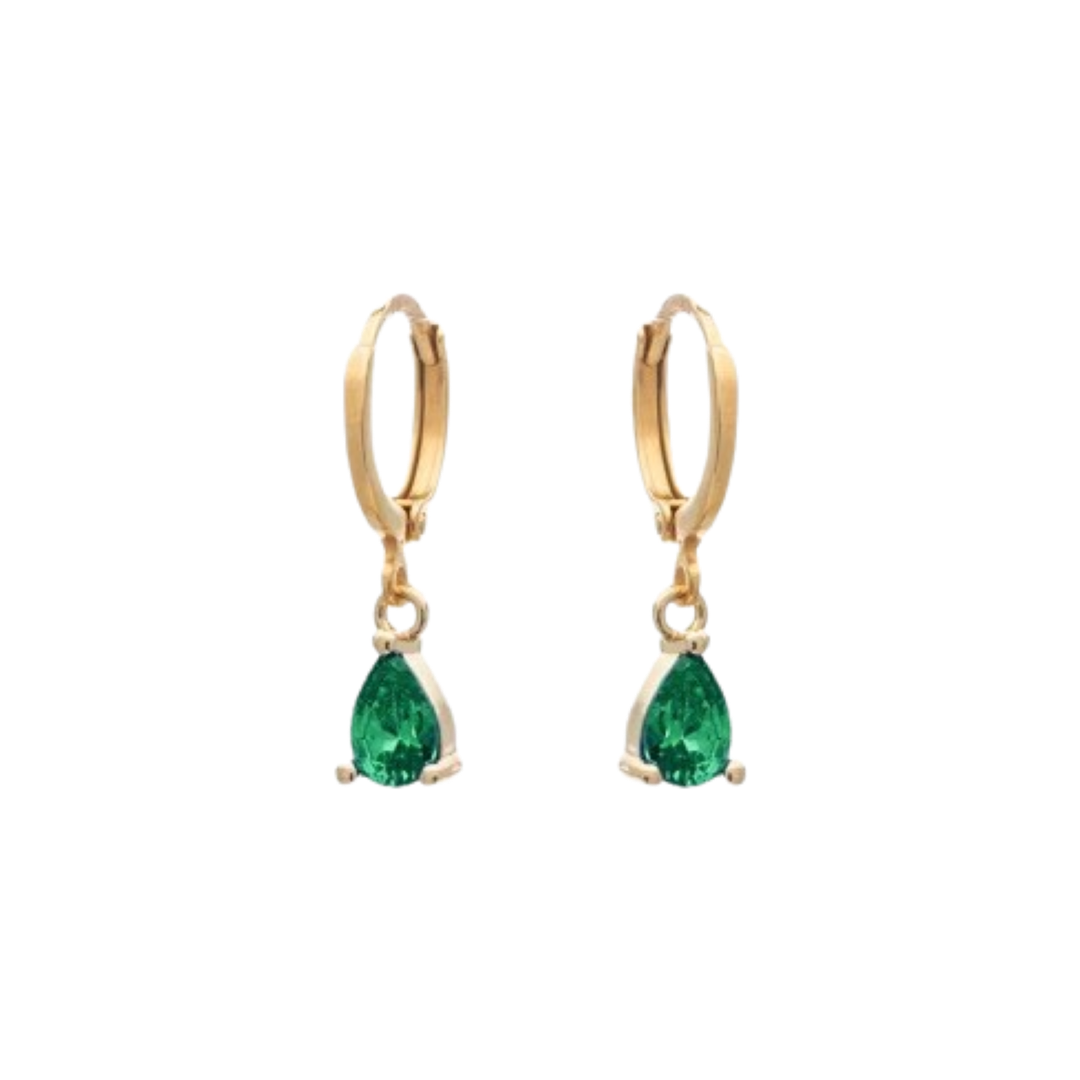 Χειροποίητα κρικακια από επιχρυσωμένο ορείχαλκο με σμαραγδί πέτρα ζιργκον.