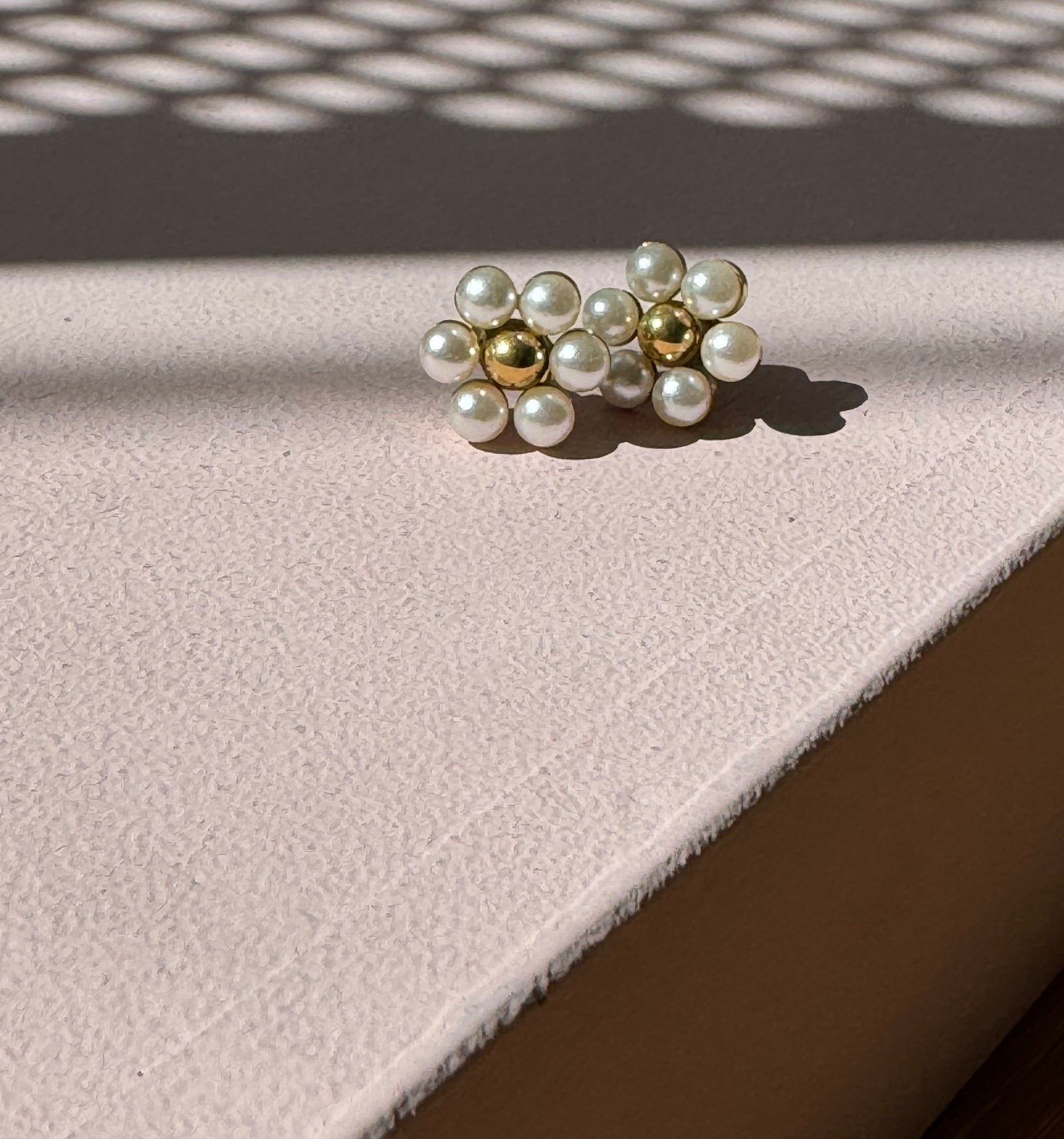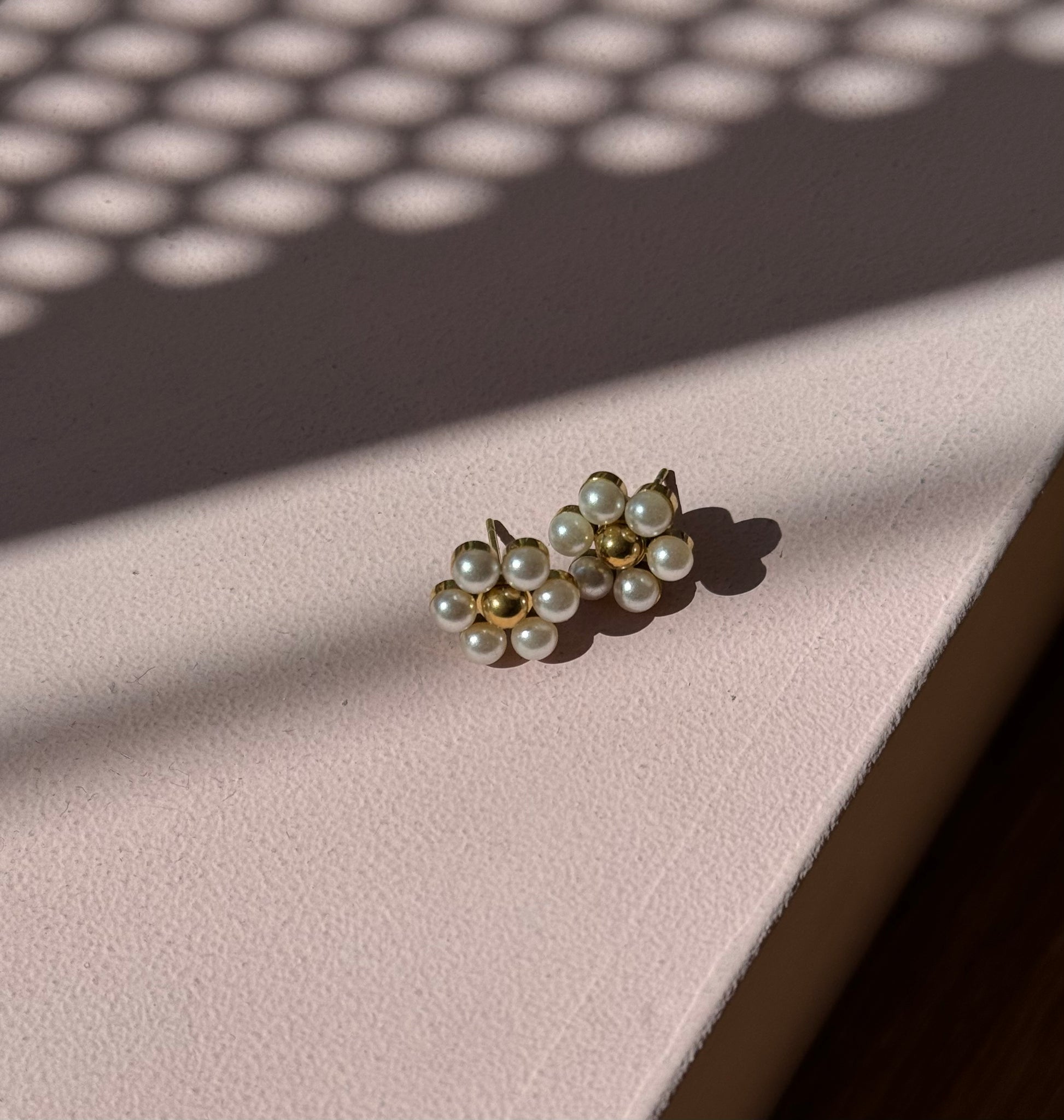 Σκουλαρίκια ατσαλινα σε σχήμα λουλουδιού , με περλιτσες.