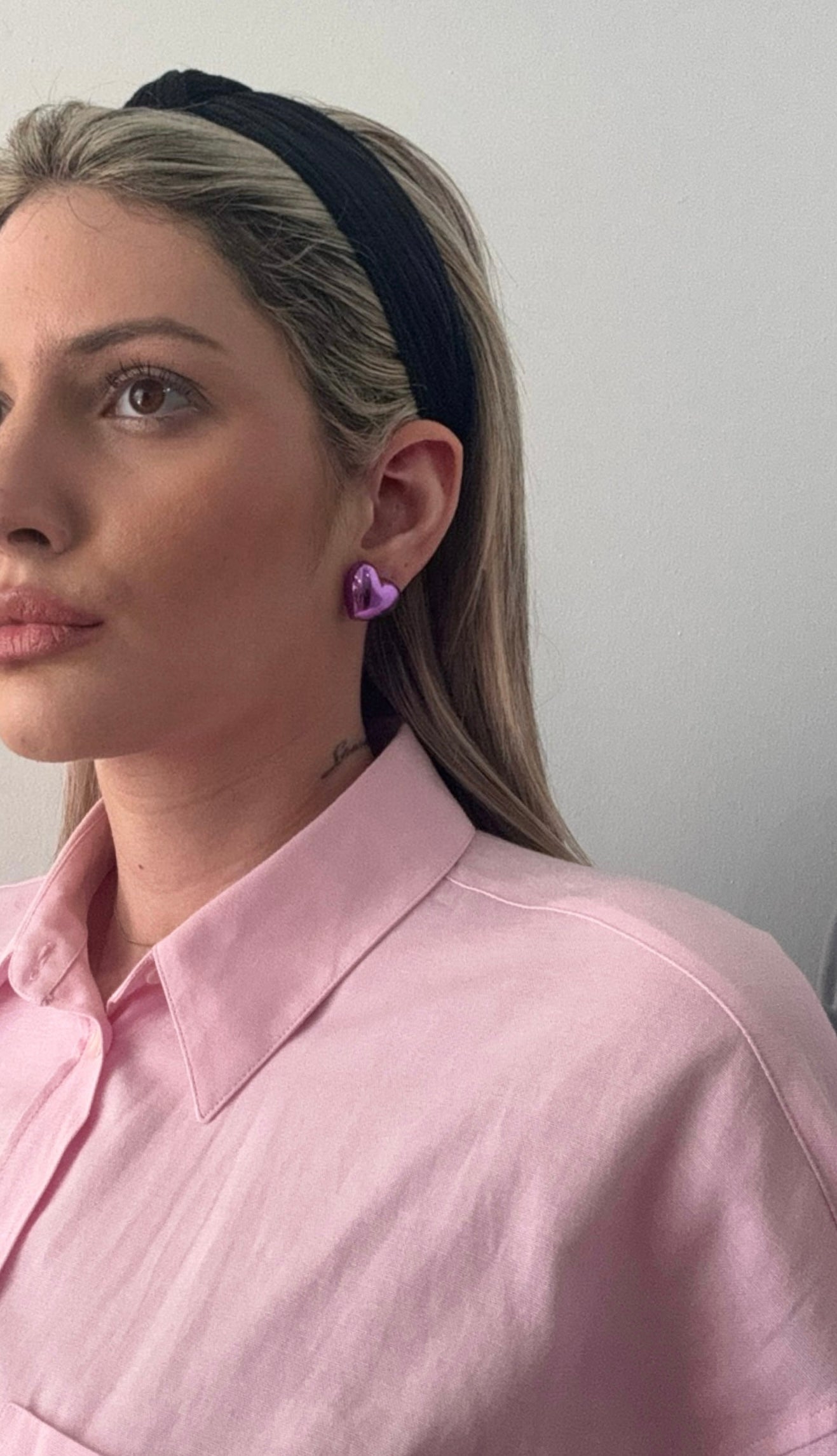 Σκουλαρίκια «mini shiny lov hearts” μωβ