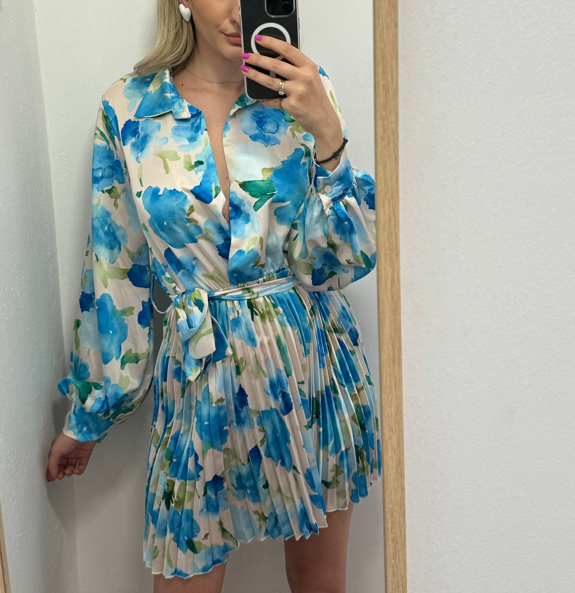 Floral σατινε φόρεμα με ζωνακι αποσπώμενο , one size.