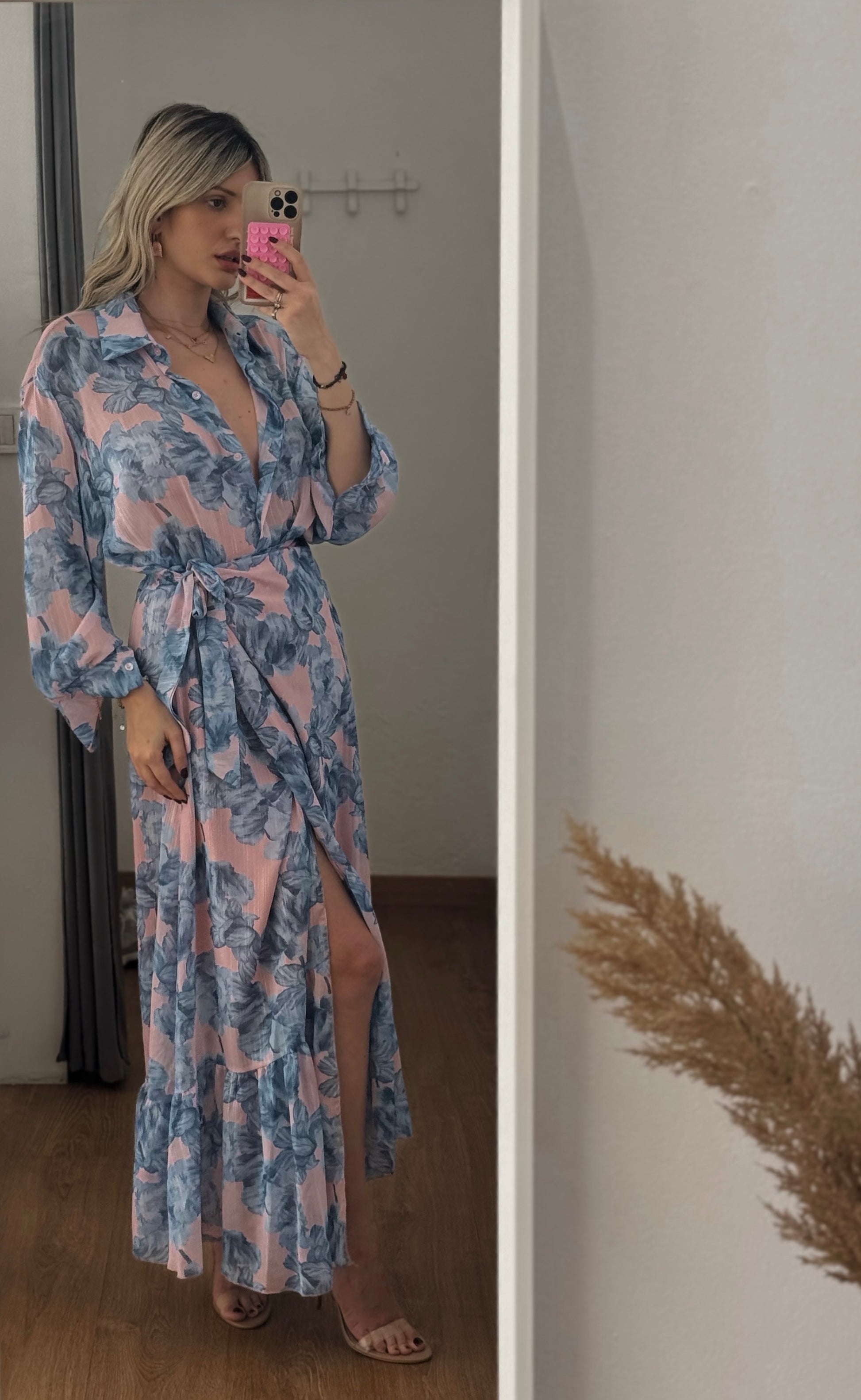 Σετ πουκάμισο & maxi φούστα με δέσιμο στη μέση και λάστιχο στο πίσω μέρος.