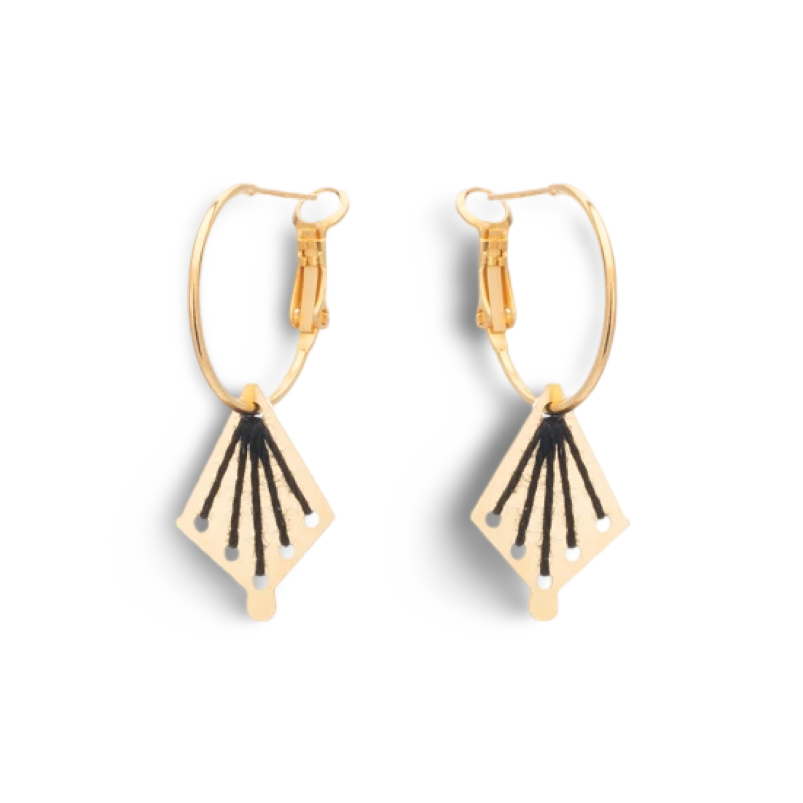 Χειροποίητα γυναικεία σκουλαρίκια της ελληνικής εταιρίας Lifelikes, κρεμαστά, από επιχρυσωμένο ορείχαλκο 18Κ, με κέντημα από κλωστή σε μαυρη απόχρωση.