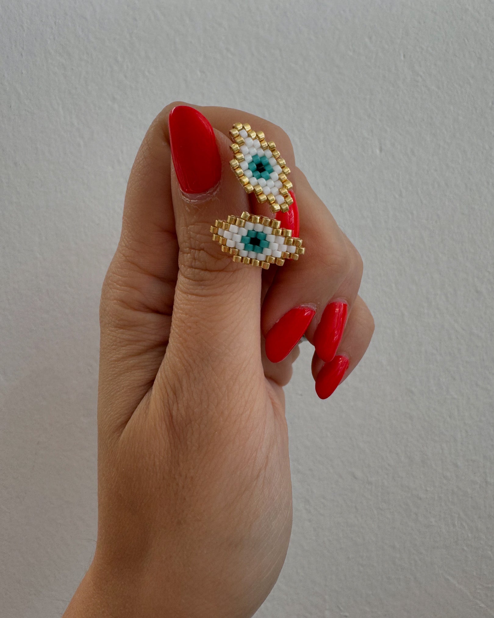 Χειροποίητα σκουλαρίκια σε σχήμα ματιού , από χάντρες miyuki & ατσάλινο καρφακι .