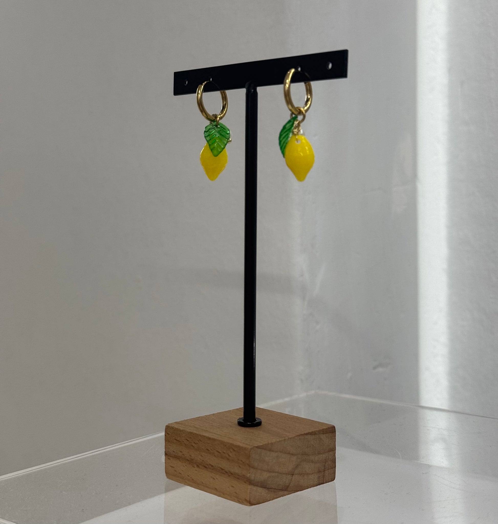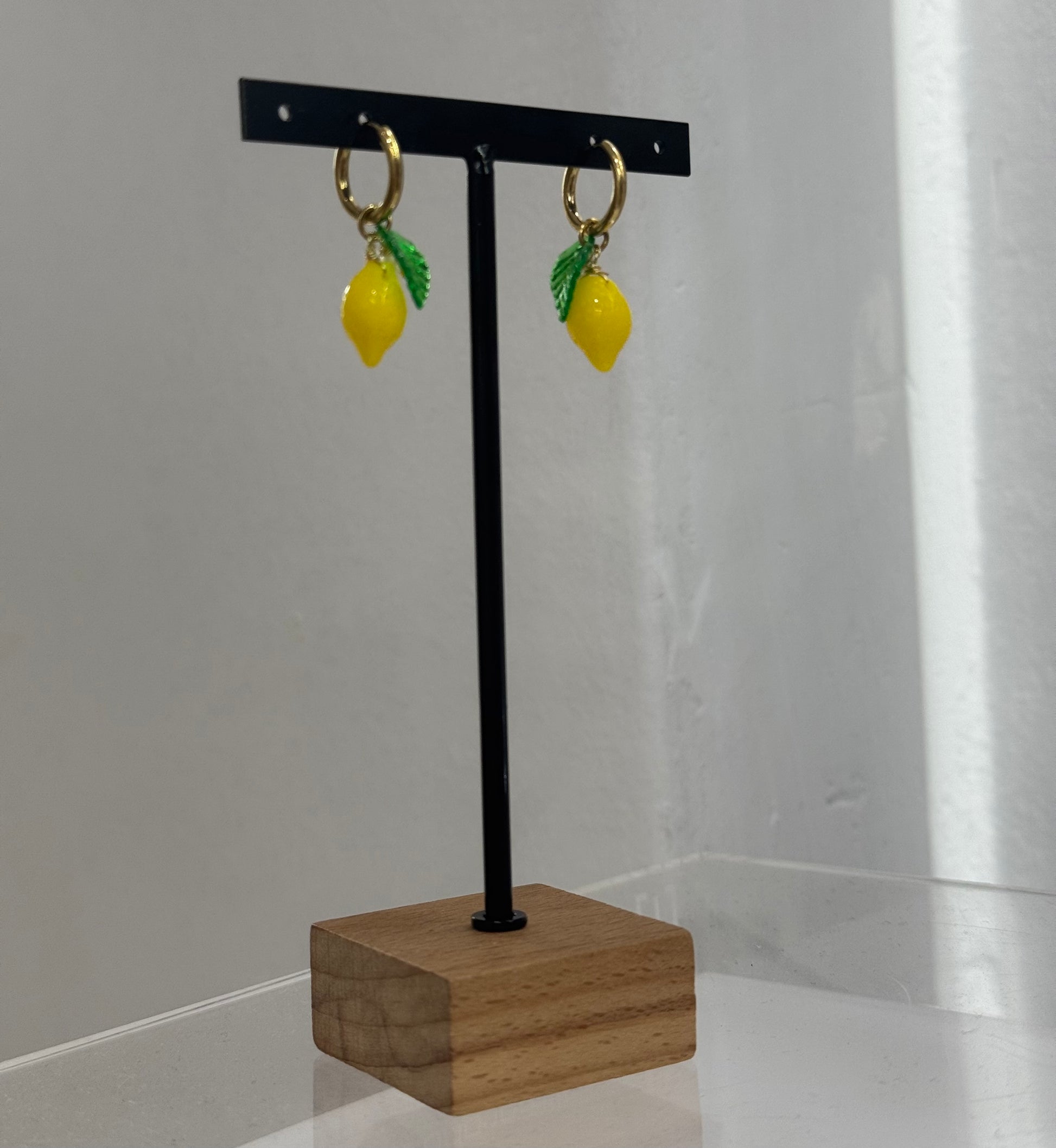 Σκουλαρίκια κρικακια από ατσάλι με στοιχείο λεμόνι