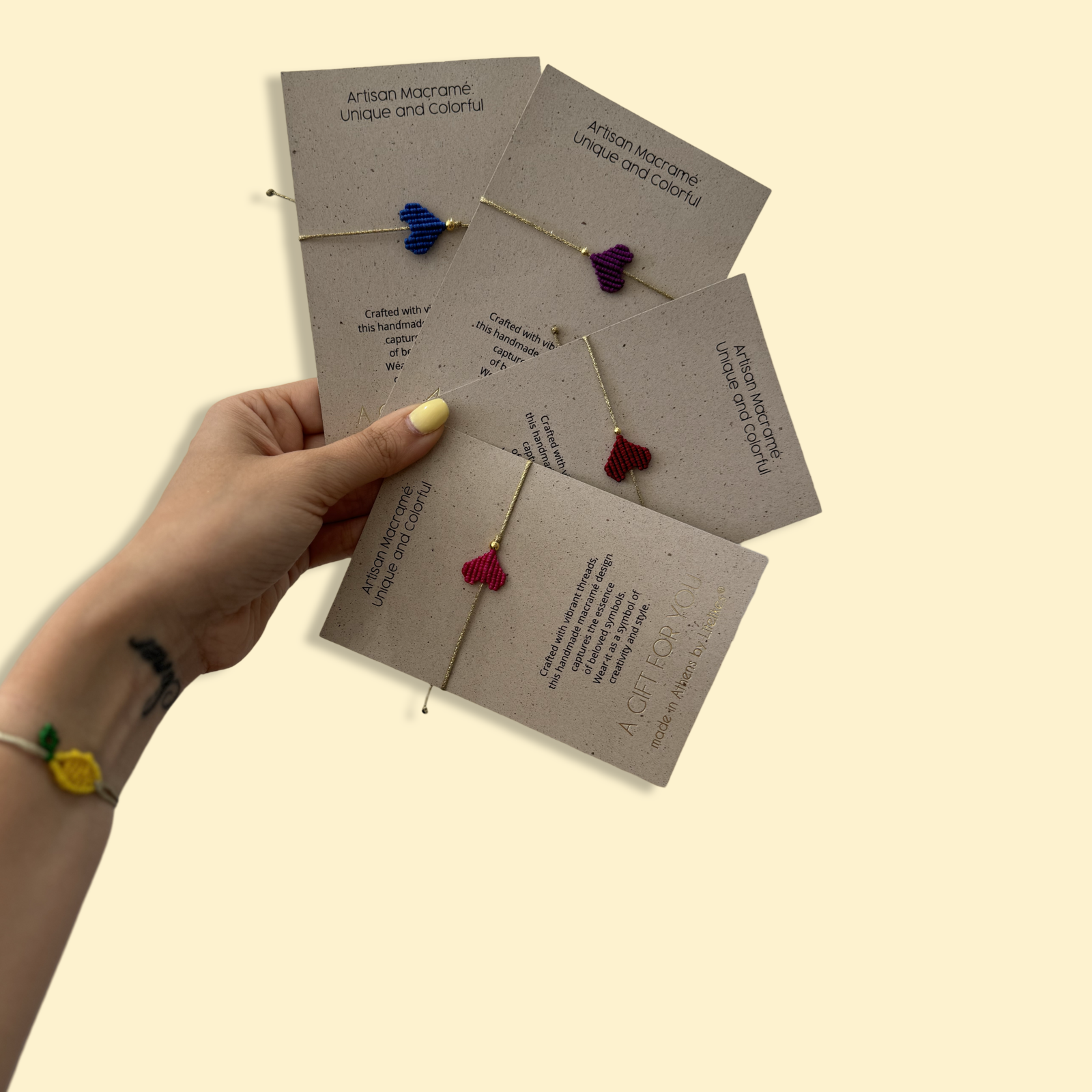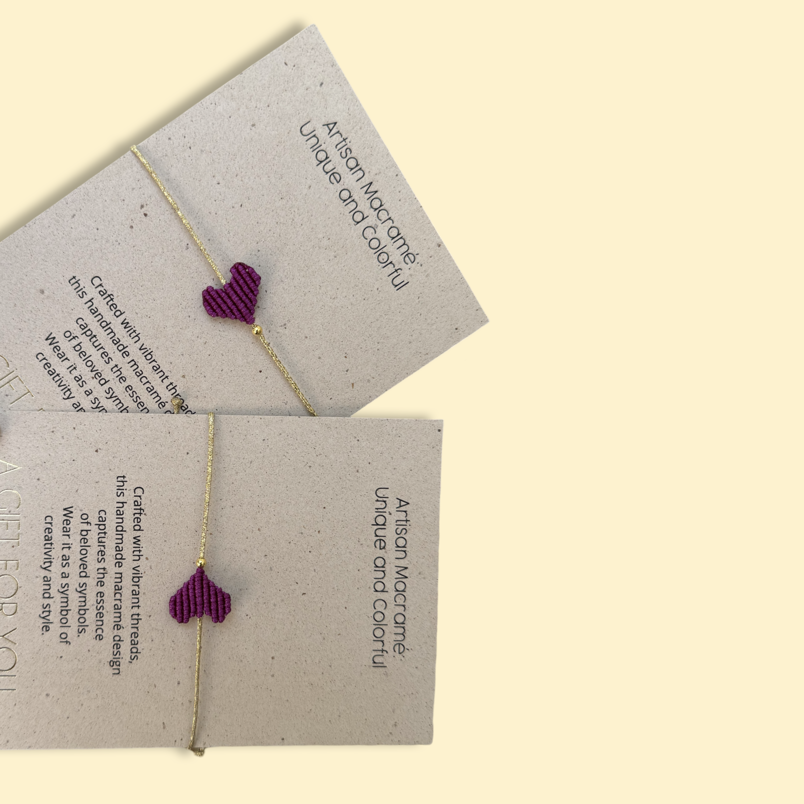 Χειροποίητο μακραμε βραχιολάκι σε σχήμα καρδιάς , σε μωβ απόχρωση & χρυσοκλωστή.