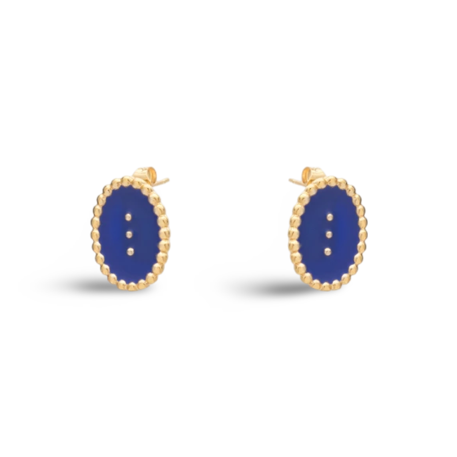 Χειροποίητα γυναικεία σκουλαρίκια της ελληνικής εταιρίας Lifelikes, καρφωτά από επιχρυσωμένο ορείχαλκο 18Κ, με οβάλ στοιχείο & μπλε σμάλτο.